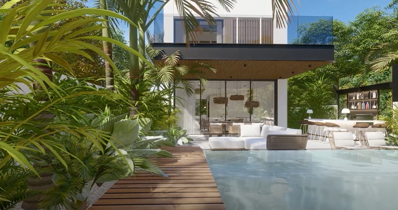 table à manger.- Une salle de cinéma...- Salon pour fêtes privées.- 5 chambres design avec